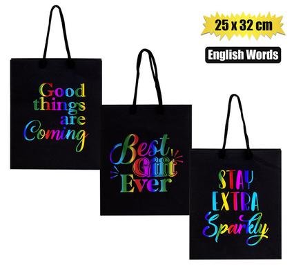 Gift-bag ppr eng words lrg 25x32cm black